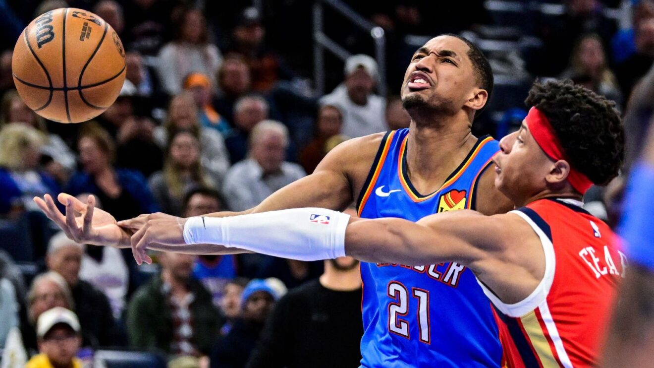 The Thunder had the game wrapped up in a 104–95 win over New Orleans, but there was still time for late drama. With time expiring, Jeremiah Fears drove toward the basket for a layup when Lu Dort made contact from behind.