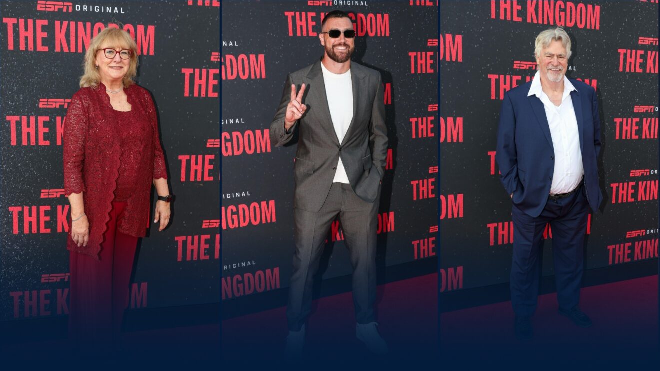The red carpet was rolled out in Kansas City for ESPN’s The Kingdom premiere, as Travis Kelce was snapped alongside loving parents Donna and Ed.